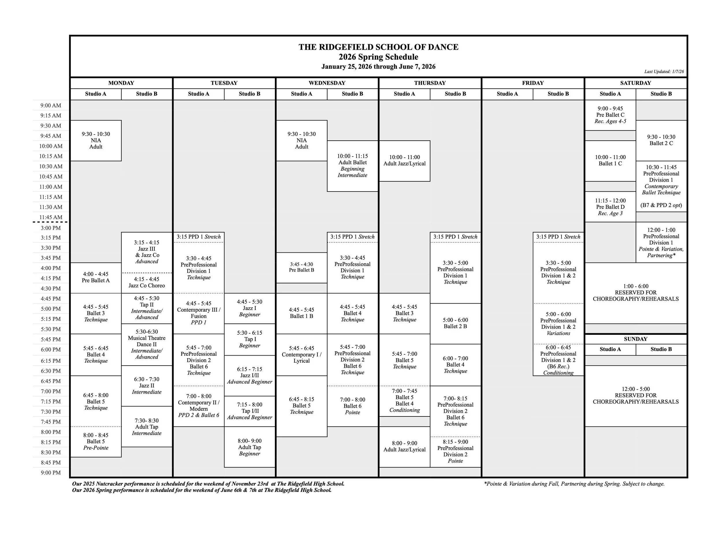 Spring 2026 Session - dancers are automatically enrolled in Spring Session.